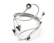 Geometric silver bracelet brass cuff blank bezel Glass cabochon base Adjustable antique silver brass G26328
