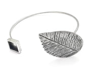 Leaf Bracelet Brass Cuff Blank Bezel Glass Cabochon Base Adjustable Antique Silver Plated Brass (8mm Blank ) G26945