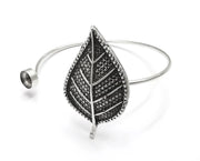 Leaf Bracelet Brass Cuff Blank Bezel Glass Cabochon Base Adjustable Antique Silver Plated Brass (8mm Cone Blank ) G27002