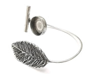 Leaf bar silver bracelet brass cuff blank bezel Glass cabochon base Adjustable antique silver brass (15 mm blank) G26300