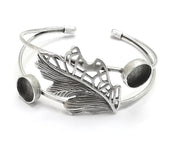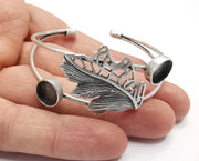 Leaf Silver Bracelet Blank Resin Cuff Dry Bezel Cabochon Base Adjustable Antique Silver Plated Brass (10mm Blanks) G26842