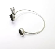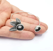 Silver Leaves Bracelet Blank Resin Cuff Dry Bezel Cabochon Base Adjustable Antique Silver Plated Brass ( 12mm - 10mm Blanks ) G26874
