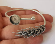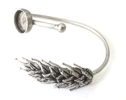 Wheat bracelet Cuff blank bezel Glass cabochon base Adjustable Antique silver plated brass (12mm blank) G26084