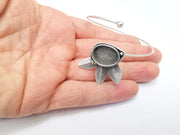Wire Leaf Bracelet Bezel, Wrap Cuff Frame, Resin Blank, Wristband Cabochon Base, Adjustable Antique Silver Plated Brass 18x13mm G34897