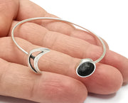 Moon Crescent Silver Bracelet Brass Cuff Blank Bezel Cabochon Base Adjustable Antique Silver Brass (8mm blank) G26821