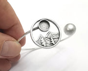 Mountain Landscape Pine Round Bracelet Blank Resin Cuff Dry Bezel Cabochon Base Adjustable Antique Silver Plated Brass (8mm Blank) G26792