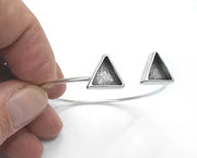 Triangle Bracelet Blank Resin Cuff Dry Bezel Cabochon Base Adjustable Antique Silver Plated Brass (10 mm Blank) G26671