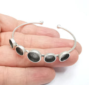 Silver Bracelet Blank Cuff Bezel Cabochon Base Resin Mountings Adjustable Antique Silver Plated Brass