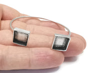 Square Bracelet Blank Resin Cuff Dry Bezel Cabochon Base Adjustable Antique Silver Plated Brass (10mm Blank) G26553
