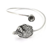 Butterfly hammered bracelet blank resin cuff dry cuff bezel Glass cabochon base Adjustable Antique Silver plated brass (8mm ) G26382
