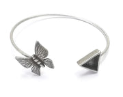 Silver Butterfly Triangle Bracelet Blanks Resin Cuff Dry Bezel Cabochon Base Adjustable Antique Silver Plated Brass (10mm Blank) G27216