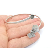 Butterfly Bracelet Bezel Blank Resin Bezel Cabochon Cuff Base Adjustable Antique Silver Plated Brass (6mm Bezel) G29909