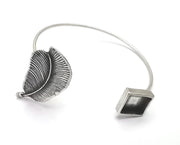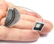 Silver Feather Bracelet Blank Cuff Bezel Cabochon Base Resin Mountings Adjustable Antique Silver Plated Brass
