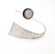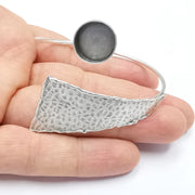 Hammered Bracelet Blank Cuff Bezel Cabochon Base Resin Mountings Adjustable Antique Silver Plated Brass