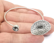 Silver Hammered Disc Bracelet Blanks Resin Cuff Dry Bezel Cabochon Base Adjustable Antique Silver Plated Brass (8mm Blank) G26582