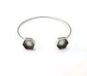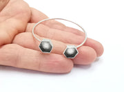 Silver Hexagon Bracelet Blanks Resin Cuff Dry Bezel Cabochon Base Adjustable Antique Silver Plated Brass (10mm Blanks) G26598