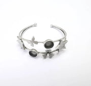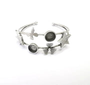 Star Butterly Flower Bracelet, Wire Cuff, Bangle Bezel, Resin Blank, Wristband Cabochon Base, Adjustable Antique Silver Brass (10mm) G35011