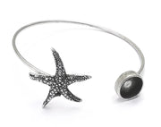 Starfish Bracelet Blanks, Cuff Bezels Cabochon Bases Resin Mountings, Cuff Frame, Antique Silver Plated Brass (10mm bezel) G26862