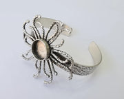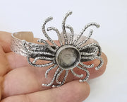 Tentacle bracelet cuff blank bezel Glass cabochon base Adjustable antique silver plated brass (14 mm Blank) G26141