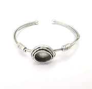 Wire Wrapped Bracelet Bezel, Wrap Cuff Resin Blank, Wristband Base, Cabochon Mountings, Adjustable Antique Silver Plated Brass (13mm) G34923