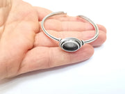 Wire Wrapped Bracelet Bezel, Wrap Cuff Resin Blank, Wristband Base, Cabochon Mounting, Adjustable Antique Silver Plated Brass 13x10mm G34948