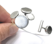 Discs wire bracelet cuff blank bezel Glass cabochon base Adjustable antique silver plated bras