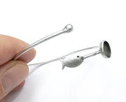 Adjustable Fish Bracelet Base Blanks are made of Silver Plated Brass metal. Bezel Size : 8x6mm