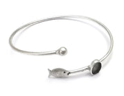 Fish Bracelet Bezel Blank Resin Bezel Cabochon Cuff Base Settings Adjustable Bracelet Antique Silver Plated Brass (8x6mm Bezel) G33008