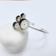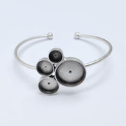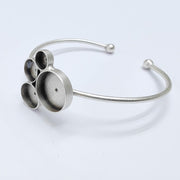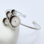 This adjustable bracelet base features four bezels in graduated sizes, allowing you to create layered, balanced, and eye-catching resin or cabochon designs. The open cuff structure offers a comfortable fit while showcasing multiple focal points in a single piece.