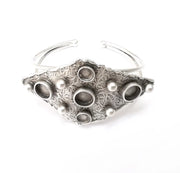 Silver Plate Bracelet, Wire Cuff, Bangle Bezel, Resin Blank, Wristband Cabochon Base, Adjustable Antique Silver Brass (8 - 6mm) G36238