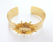 Sun Bracelet Blank Resin Bangle Dry Flower inlay Blank Cuff Bezel Glass Cabochon Base Textured Adjustable Shiny Gold Plated (16mm ) G20952