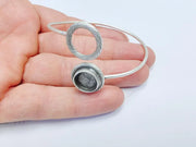 This elegant antique silver plated adjustable bangle features a round bezel setting and a stylish sphere accent, perfect for DIY jewelry enthusiasts. The bezel cup allows for easy customization with resin, cabochons, or small artwork, making this bracelet a versatile base for personalized designs. With its sleek and minimalist design, this bangle adds sophistication to any outfit, whether for casual wear or special occasions. Crafted with high-quality materials, it ensures durability and long-lasting style.