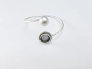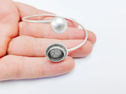 This elegant antique silver plated adjustable bangle features a round bezel setting and a stylish sphere accent, perfect for DIY jewelry enthusiasts. The bezel cup allows for easy customization with resin, cabochons, or small artwork, making this bracelet a versatile base for personalized designs. With its sleek and minimalist design, this bangle adds sophistication to any outfit, whether for casual wear or special occasions. Crafted with high-quality materials, it ensures durability and long-lasting style.