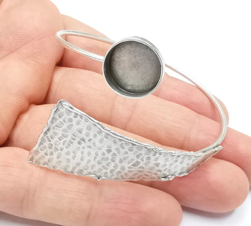 View full detailsCircle Bracelet Blank Resin Cuff Dry Bezel Cabochon Base Adjustable Antique Silver Plated Brass (10mm Blank) G26749