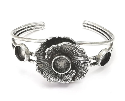 Flower Bracelet Blank Resin Cuff Dry Bezel Glass Cabochon Base Adjustable Antique Silver Plated Brass (8mm Blanks ) G26442