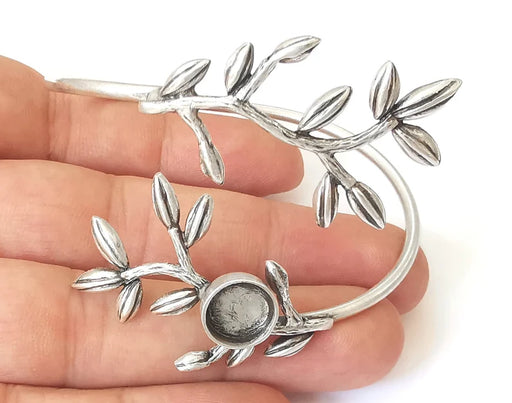 Flower branch bracelet brass Cuff blank bezel Glass cabochon base Adjustable Antique silver plated brass (11mm and 8mm blank) G25851