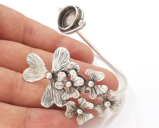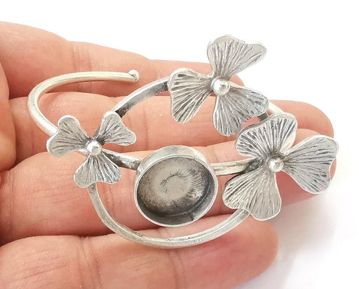 View full detailsFlowers bracelet brass cuff blank bezel Glass cabochon base Adjustable Antique Silver plated (14mm ) G25560