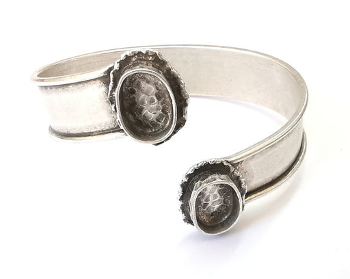 Wire bracelet brass cuff blank bezel Glass cone cabochon base Adjustable antique silver plated brass (8mm Blanks ) G25181