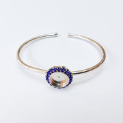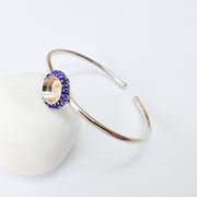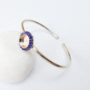 This elegant adjustable bangle bracelet features a 10mm bezel setting surrounded by sparkling Navy Blue crystals, creating a refined and timeless design. Its shiny silver finish adds sophistication, making it perfect for both everyday wear and special occasions.