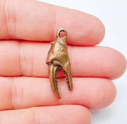 Crab Claw Pendant, Ocean Themed Charm, Realistic Lobster Claw, Rustic Nautical Jewelry Supplies, Antique Copper Plated 34x12mm G37298
