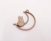 2 Crescent Moon Cat Charms Antique Copper Plated Charms (41mm) G22485