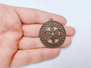 Flower Pendant Charm, Bohemian Flower Pendant, Locket Pendant, Earring Charms, Antique Copper Plated 43x38mm G36662