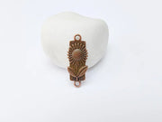 2 Sunflower Charm Connector, Floral Pendant, Herb Earring Charms, Sunflower Dangle Necklace Part, Antique Copper Plated 32x12mm G37297