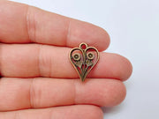 2 Floral Heart Pendant, Two Flower Charm, Romantic Nature Jewelry, Botanical Necklace, Earring Charm, Antique Copper Plated 22x17mm G37293