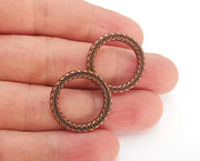 4 Copper Circle (Double Sided) Charms Antique Copper Plated Findings ( 24mm ) G21638