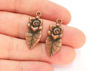 4 Flower Leaf Charms Antique Copper Plated Charms (32x13mm) G22580