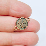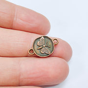 4 Moth Charm Connector Pendant, Double Sided Organic Round Coin Design, Antique Copper, 20x12mm, G37645
