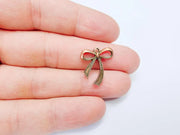2 Bow Charm, Bow Tie Pendant, Ribbon Charms, Earring Charms, Dangle Pendant, Antique Copper Plated 21x18mm G36777