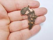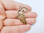 Africa Map Pendant with Tribal Patterns, Cultural Statement Charm, Boho Pendants, Earring Charms, Antique Copper Plated 45x34mm G36704