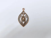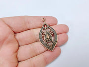 Antique Copper Plated Pendant with Swirling Filigree Design, Boho, Rustic, Nature Earring Charm, Gothic Pendant 48x27mm G36629